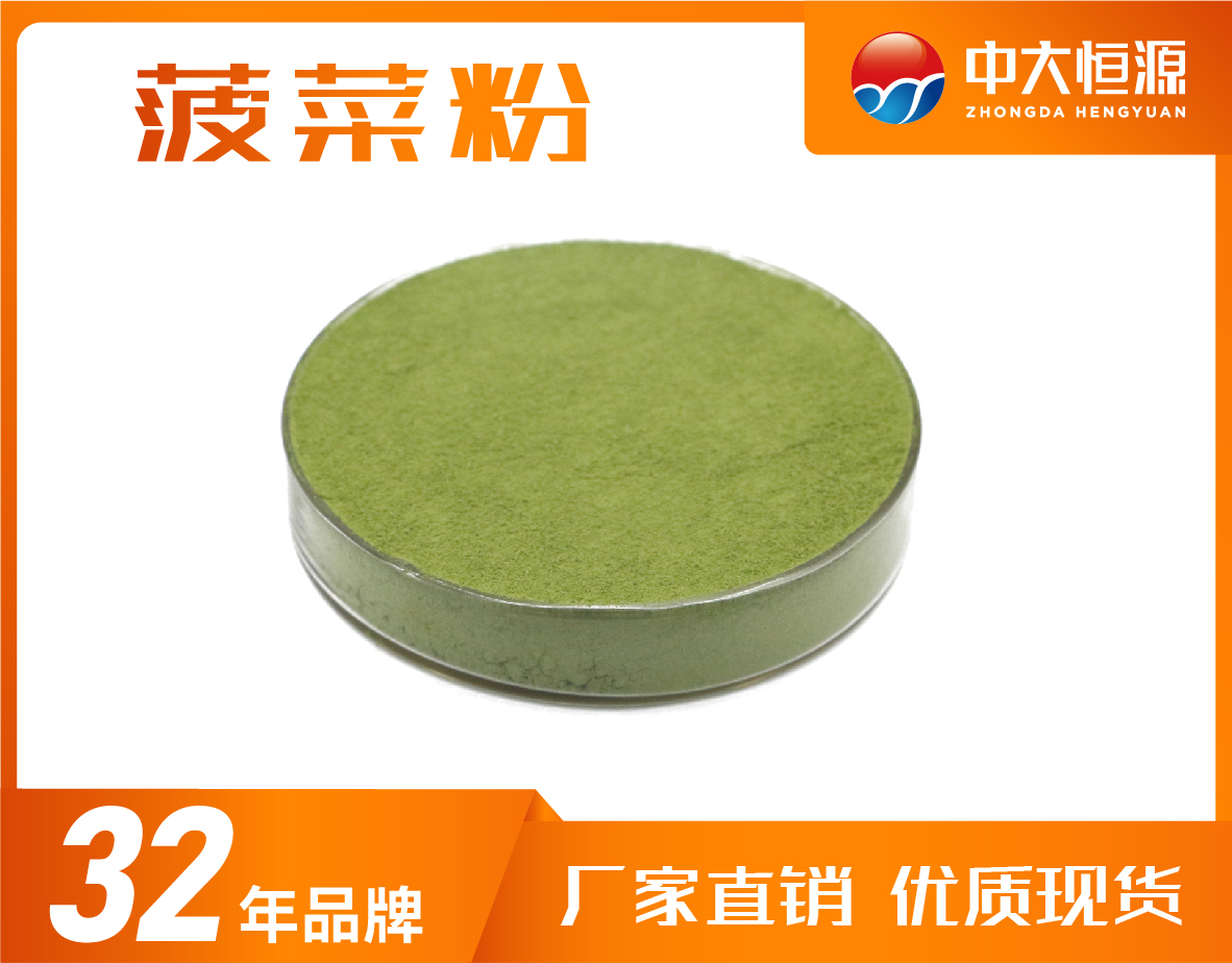 本產品以新鮮優質的菠菜為原料噴霧干燥而成,具有濃郁的菠菜氣滋味,不僅保留了菠菜的營養成分,且附帶著色功能,粉末疏松、不易結塊。
